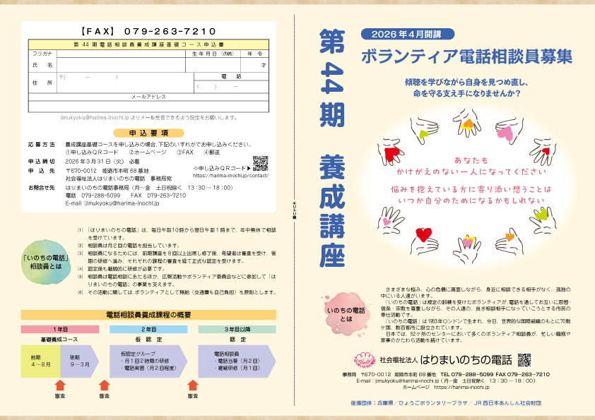 「はりまいのちの電話」では、私たちの活動を応援してくださるメール会員を募集しています。