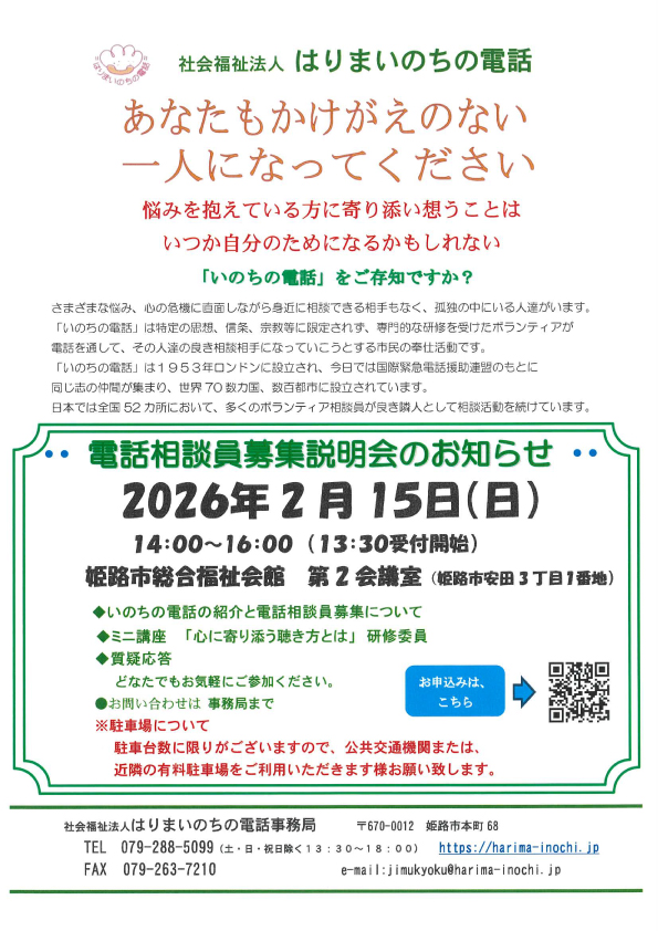 ※電話相談員説明会は2026 年2月 14 日(土)締め切り